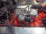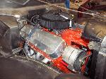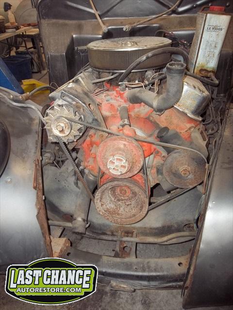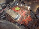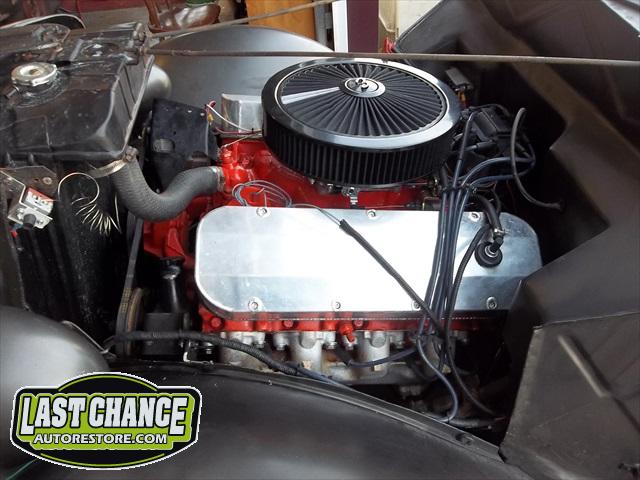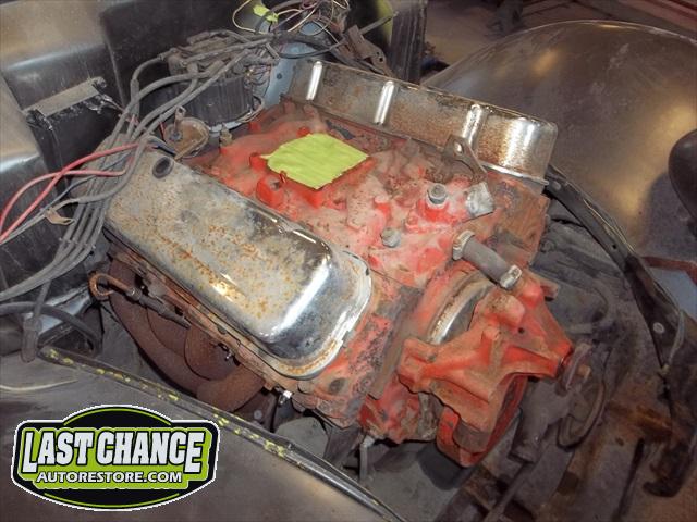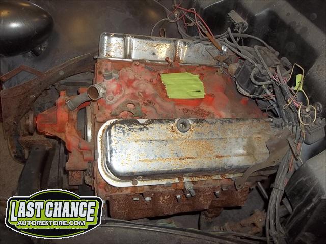 The motor is a Big Block Chevy 454 with a 3 speed turbo 350 automatic transmission.