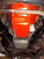The exhaust system and some engine components were removed, degreased and sandblasted and treated to some fresh paint. The motor received new gaskets, upgraded valve covers and new air cleaner assembly.
