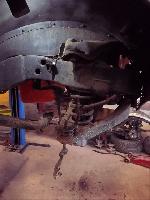 The rear leaf springs were replaced and new shocks were installed to the new mounting points that were made.