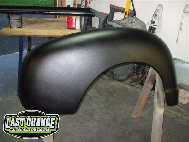 We performed a large amount of fabrication along with many upgrades. We replaced all the brakes, repaired the steering & suspension components & repaired the body & finished it with a special "hot rod black" satin paint.