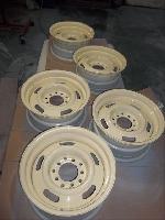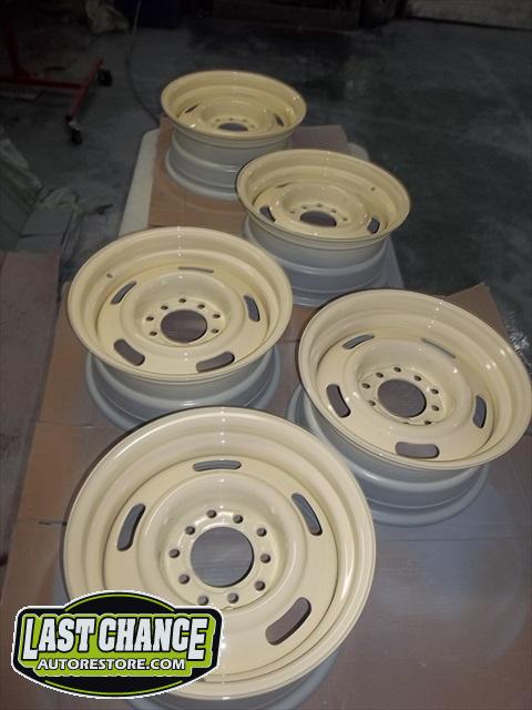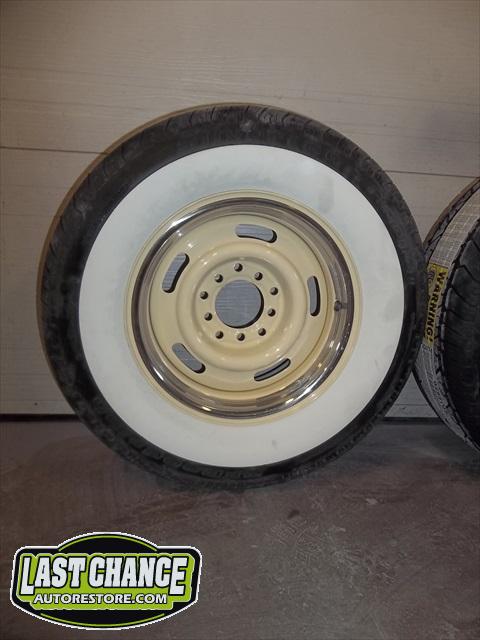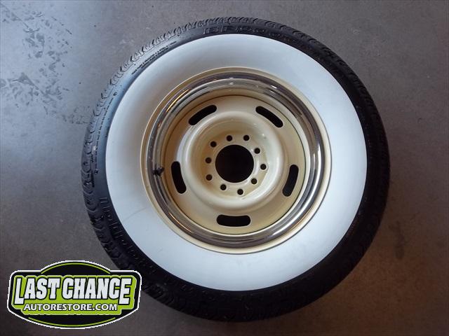 The wheels and tires will be upgraded to a wider, larger steel wheel painted correct company colours and special ordered wide white wall tires will be added too!