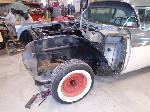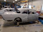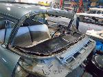 We began the restoration by removing all of the chrome trim, front and rear bumpers, hood, trunk lid, both doors and all glass.