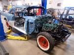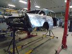 The next step was to lift the body from the chassis and carefully place it onto one of our custom made rotisseries.