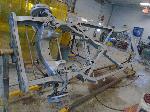 The chassis was disassembled next. The frame was degreased and cleaned to prepare it for media blasting.