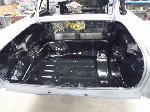 After the high build primer was applied, the body was taken off of the rotisserie and placed on one of our body dollies. The interior floor, roof and trunk sections received two coats of the special two part black epoxy.