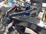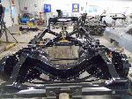 The frame and rear end assembly received 3 coats of gloss black epoxy paint. The rear end assembly was reunited with the painted frame.