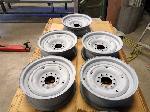 All five steel wheels received two coats of special black epoxy primer to the backsides, centers and outside rim faces before two coats of grey high build primer was applied to the front faces of all the wheels.