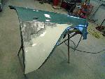 The trunk lid and both doors were dry fitted to the body and adjustment and changes for better fitment were made to the panels.