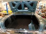 With the interior like new again, the inside trunk area was enhanced with a new custom carpet and factory correct black rear seat and trunk surrounds. The period correct jack and spare tire (with a hubcap too) was placed in the correct location.