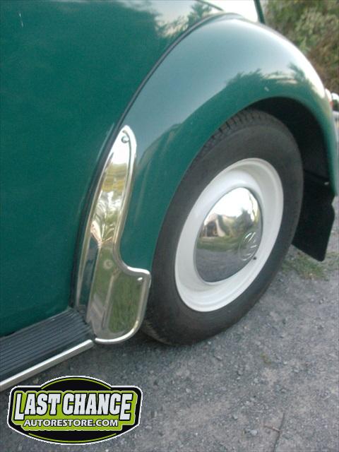 We replaced the worn weather stripping, added sound insulation to the inner door panels and added some additional chrome trim. We also installed the missing "Volkswagen" front hood emblem and added VW rear mud flaps.