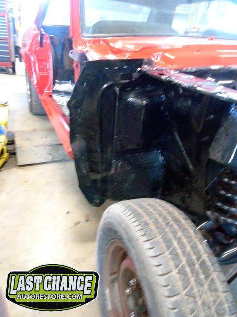 With the body shell and all of its panels nice and straight and smooth, the high quality base coat/clear coat paint was applied.