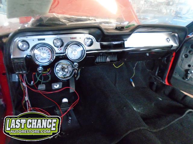 This Mustang's interior re assembly is also in progress. The rebuilt white faced cluster and dash was dry fitted and installed to the dash and a special polished aluminum dash face kit was also installed.
