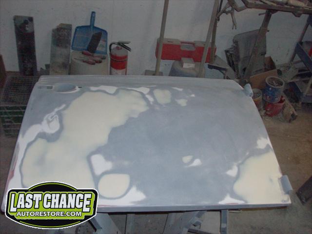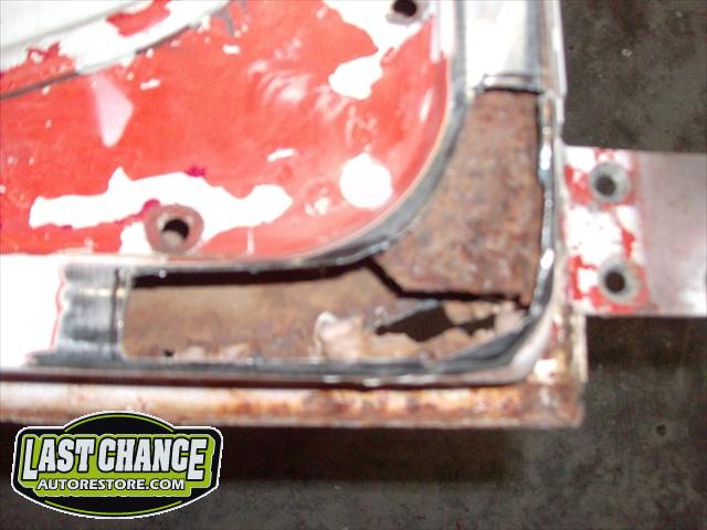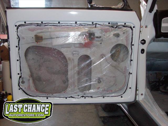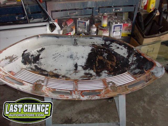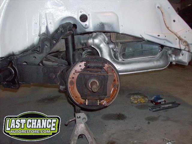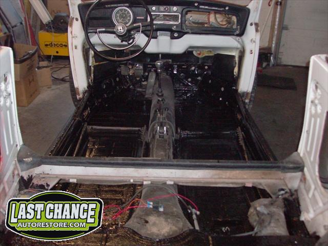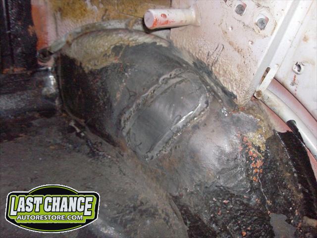 We have performed the required metal fabrication work it needed in the rear floor area & inner wheel wells, along with repair to both doors & all 4 fenders.It has received 2 coats of special "POR15" paint on both sides of the floor pans along with a top coat of rocker guard on the underside of the pans.
