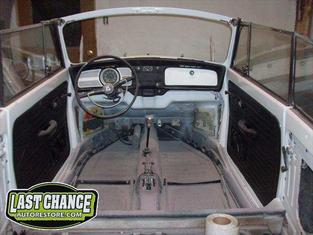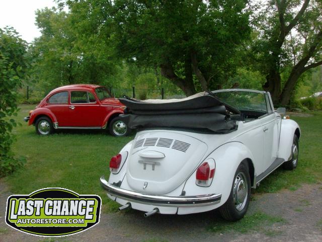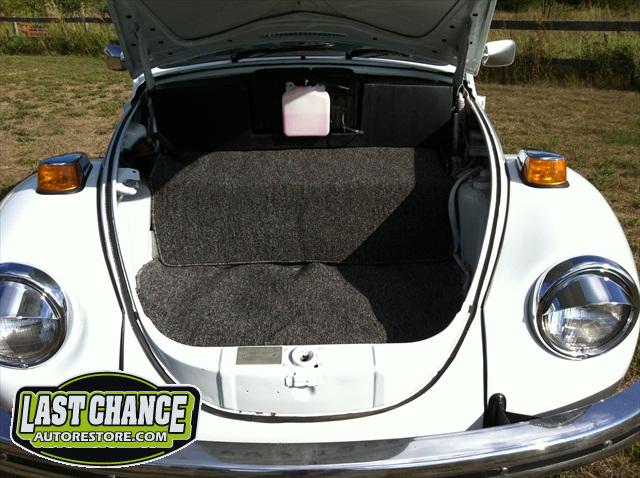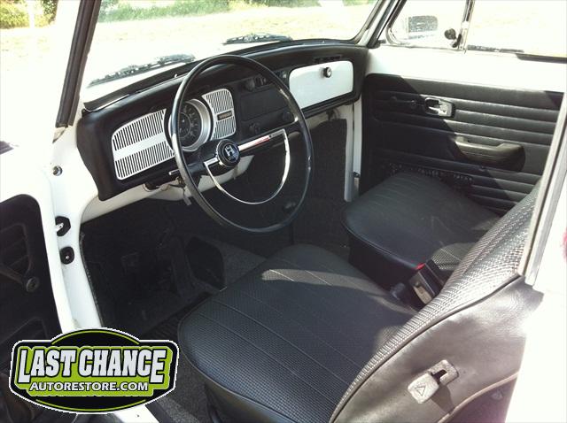The original factory colour was Orange, but we decided to paint it the most requested & most desirable colour for a Bug convertible, Pure White. We have upgraded the carpet to the "salt & pepper" pile carpeting & will retain its original colour seats of black (original look basket weave style).