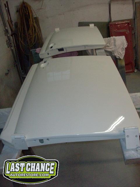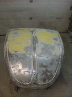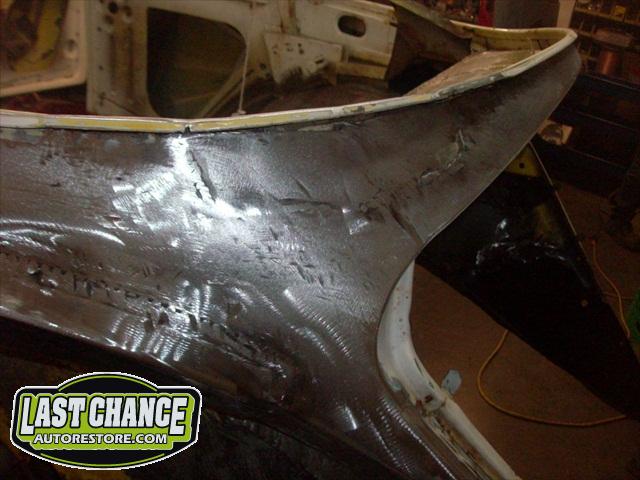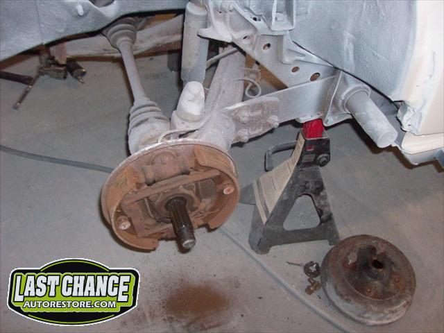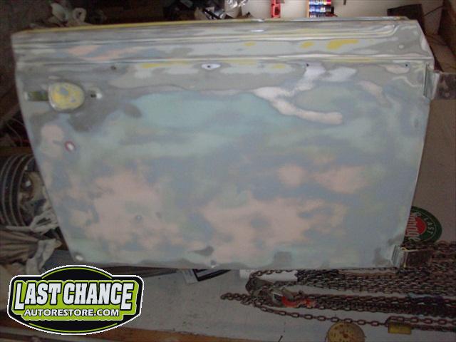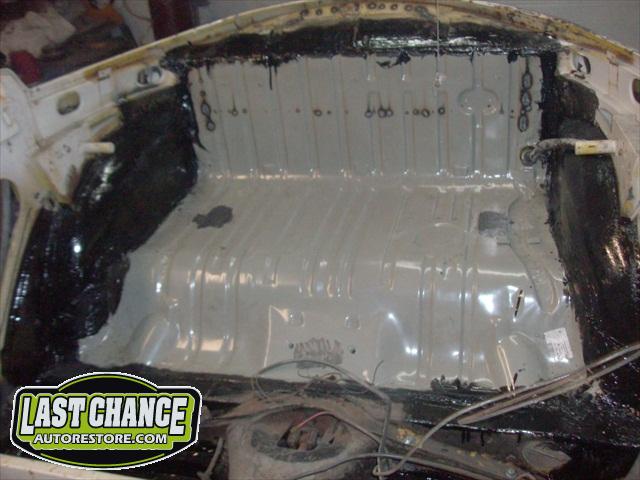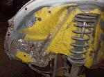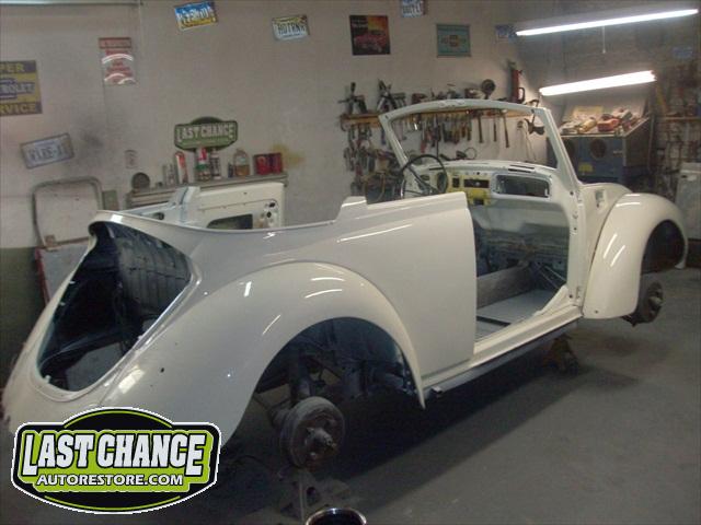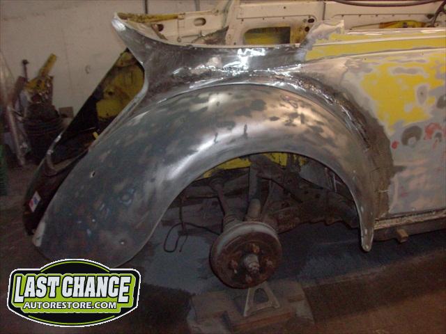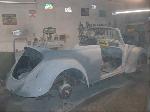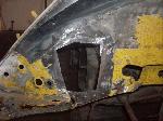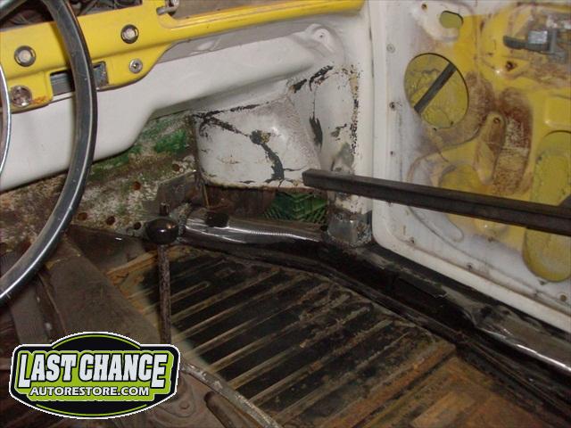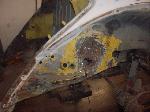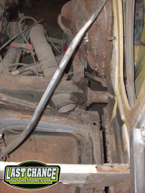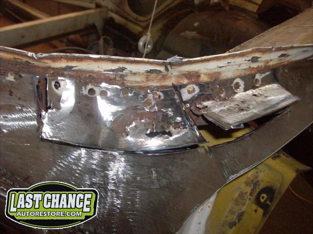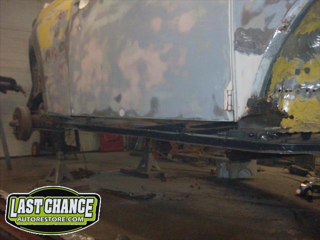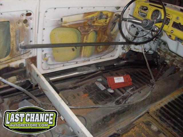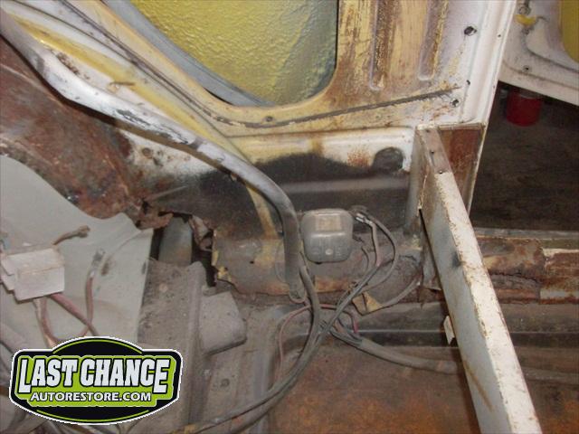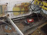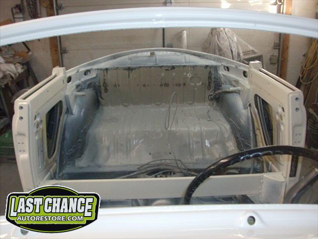We removed the engine, along with the bumpers, lights, fenders and interior to expose the amount of work that will be required to restore her to original condition. The original colour combination was Lemon Yellow, with a black top and black interior.