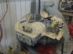 The original black engine tin was sandblasted and powder coated a nice cream colour.