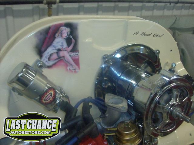 There was custom air brush artwork added to the dog house (our client had a photo from an old calendar) to personalize the beautiful motor.