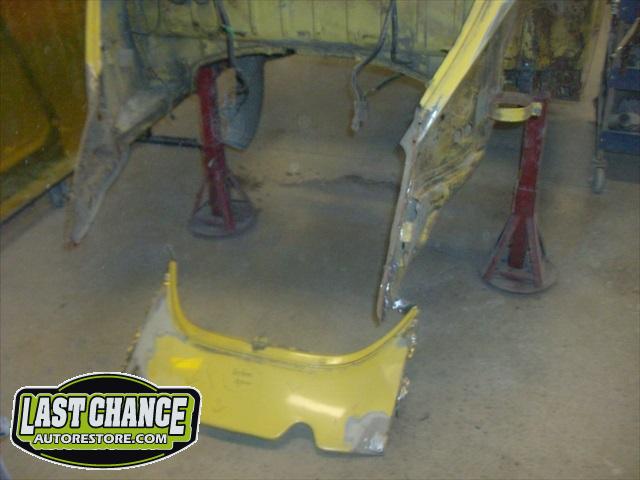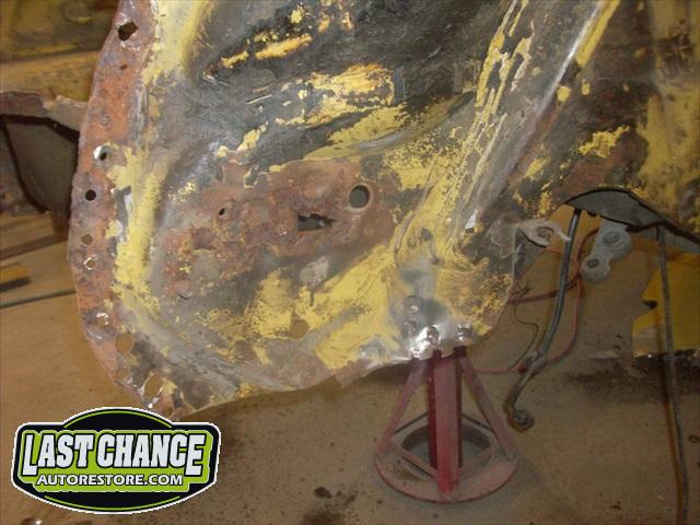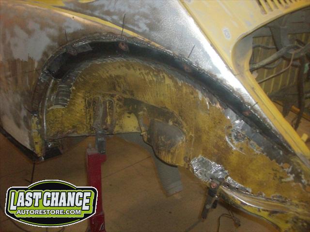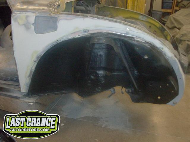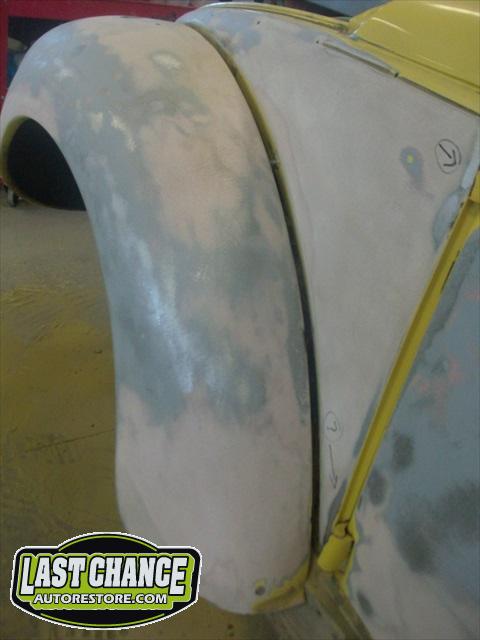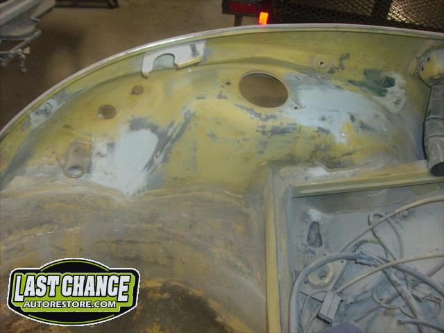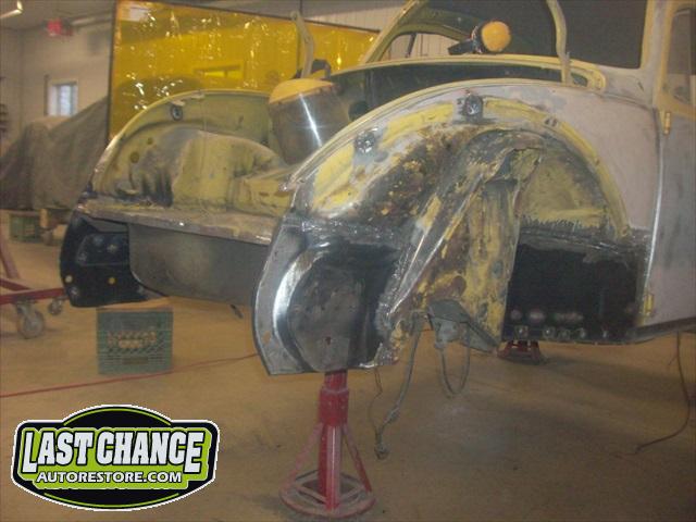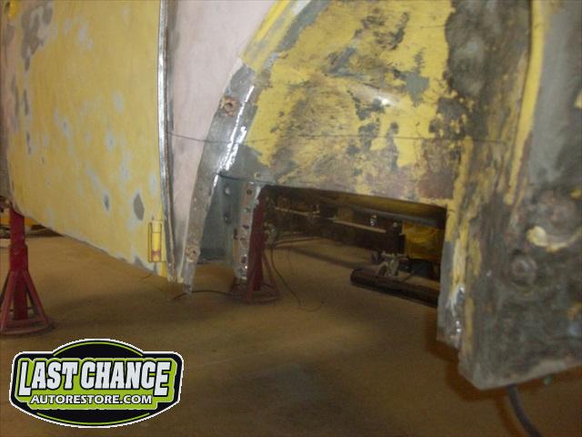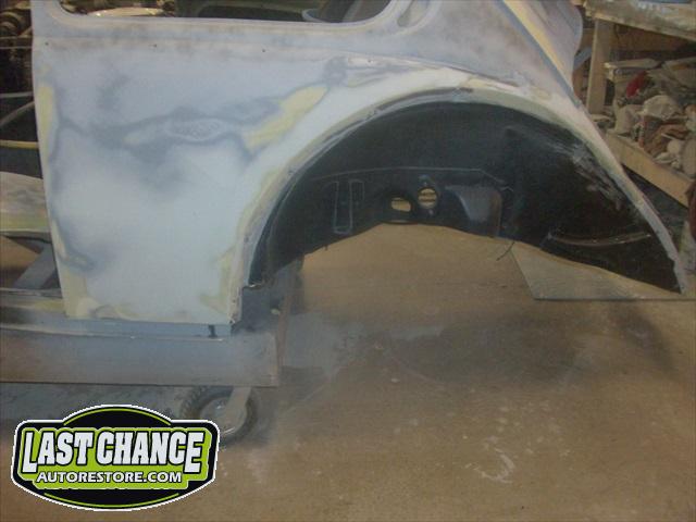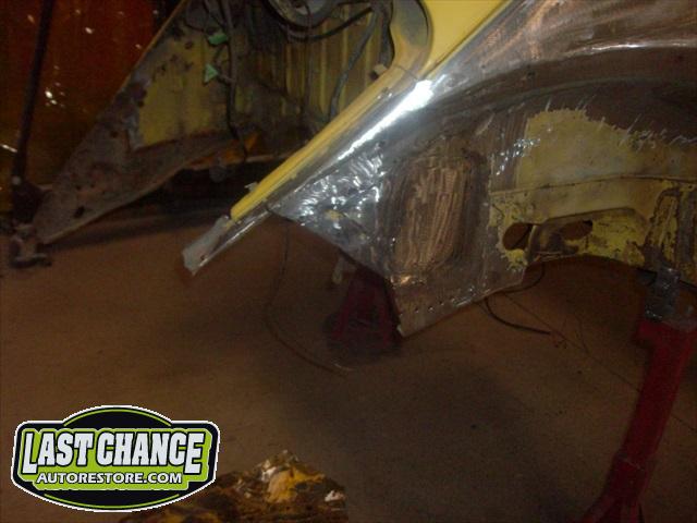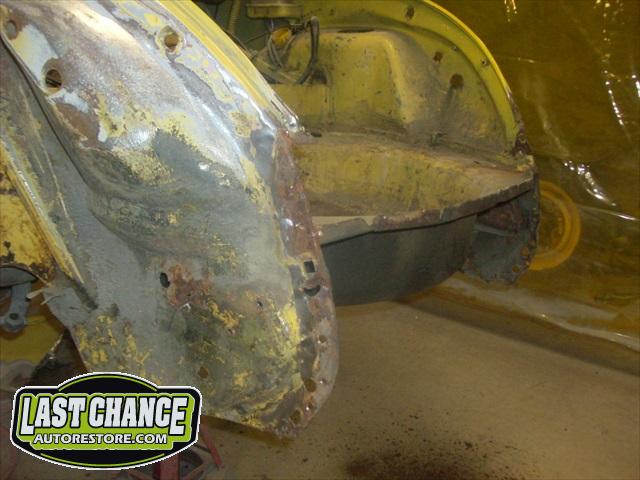 We will be able to make a material list of metal we will need to order. We noticed there may have been a collision to the driver's side front area at one time. We also noted the replacement "Mexican" rear fenders. We will need to inspect the front fenders further.