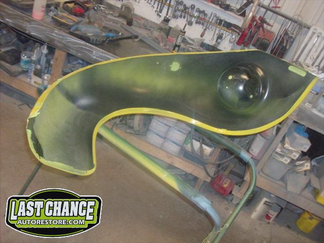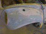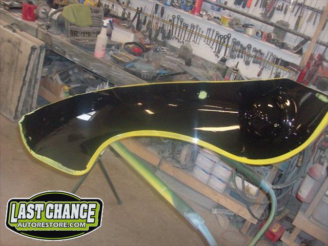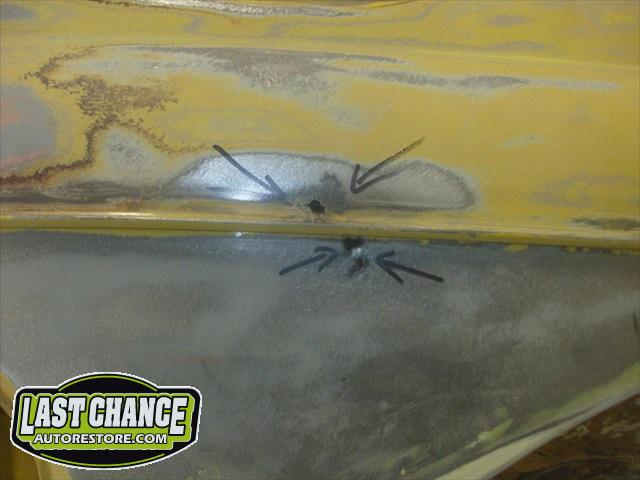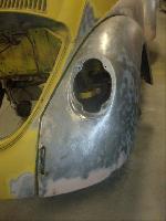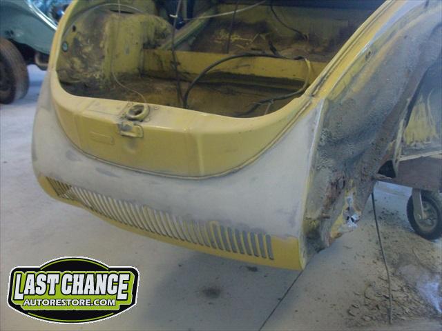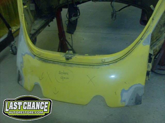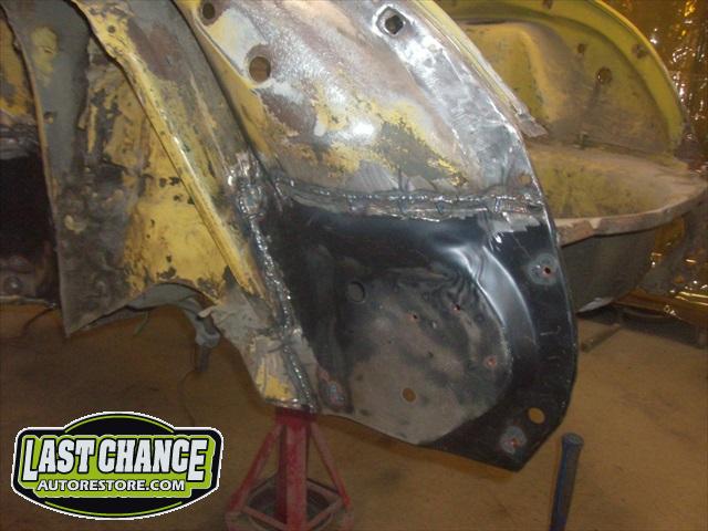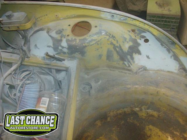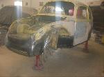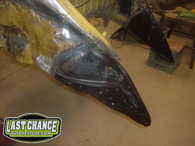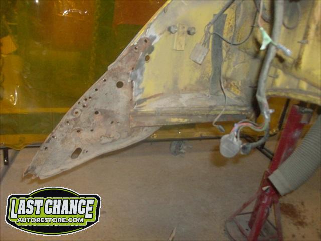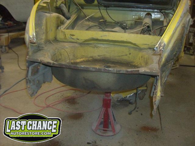 We will be able to make a material list of metal we will need to order. We noticed there may have been a collision to the driver's side front area at one time. We also noted the replacement "Mexican" rear fenders. We will need to inspect the front fenders further.