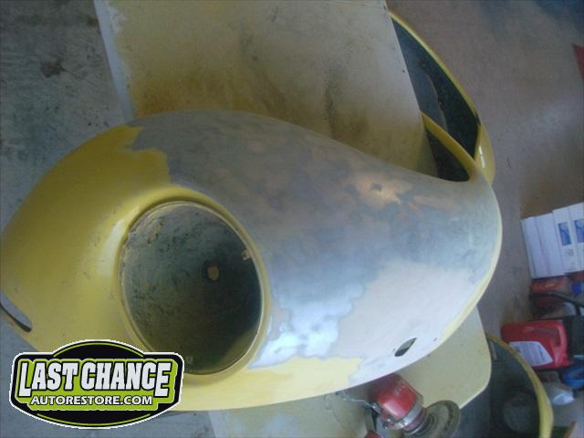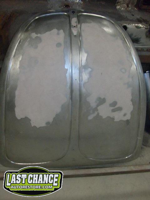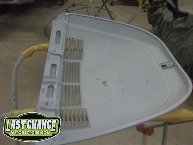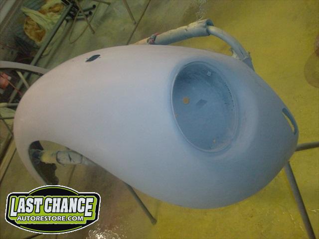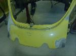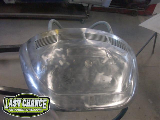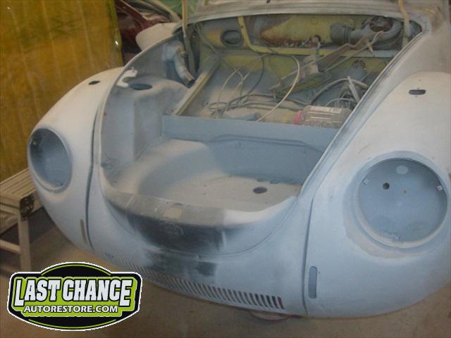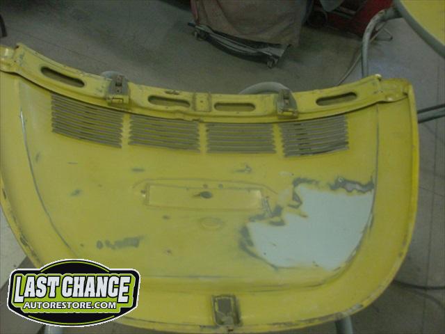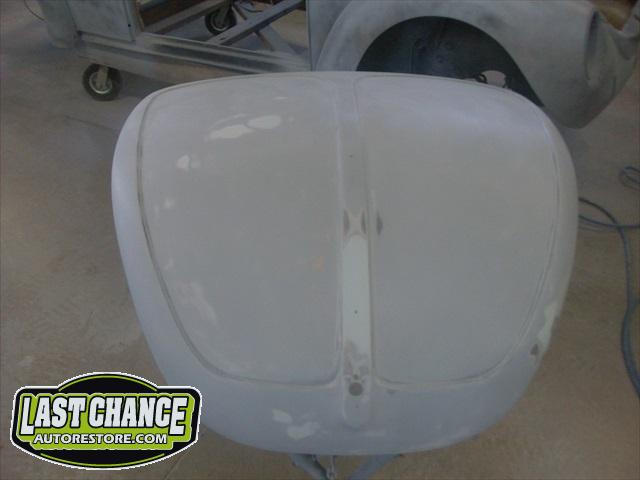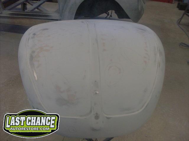 The front hood and rear engine lid required repairs (numerous dents were hammered and dollied out after old body filler from previous repairs was removed. Both panels were then degreased, sanding and received the same grits of sanding with special high build primer applied between coats.