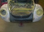 We started by preparing the body to be lifted off the chassis. It is a bit more difficult to lift the body off of a Super Beetle (because of the strut front suspension) than a "Standard Beetle".