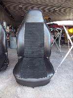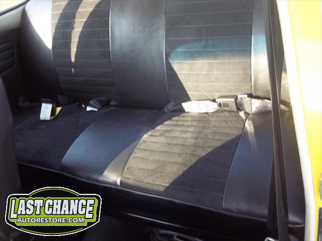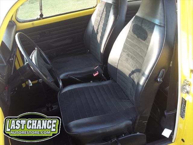 Custom made seat upholstery (with suede inserts to both front and rear seats) with all new foam for better support. New three point "Euro style" seat belts for the front and new Euro style two point belts for the rear were installed over the all new thick pile black carpet kit. New door panels were installed to complete the all new looking interior.