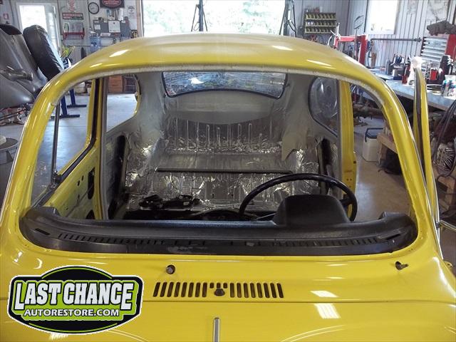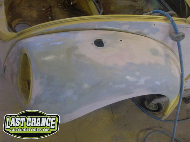 All four fenders were also sanded at all levels and dry fitted one final time before Sunny's new paint was applied. Sunny's beautiful new paint job turned out great! It is a Factory correct Saturn Yellow VW paint code is L13M.