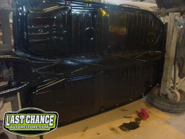 The new floors received 2 coats of special POR15 rust resistant paint to both the top and bottoms of the pans.