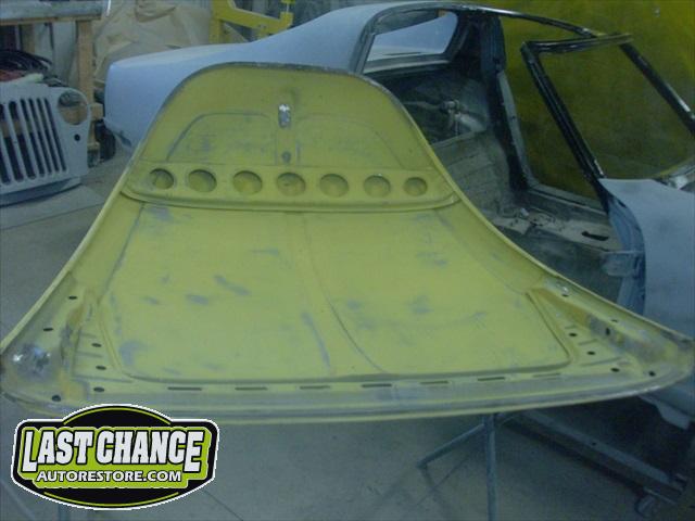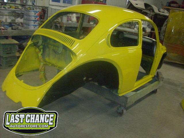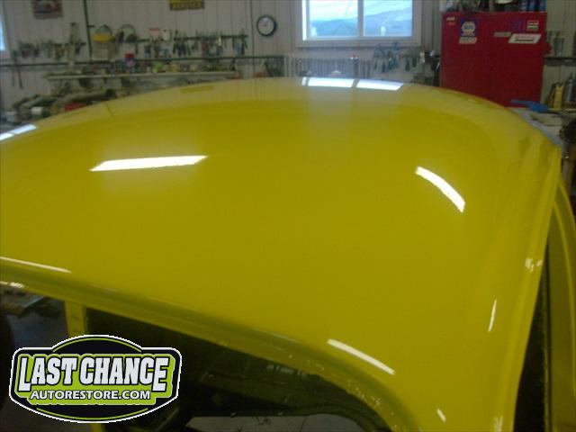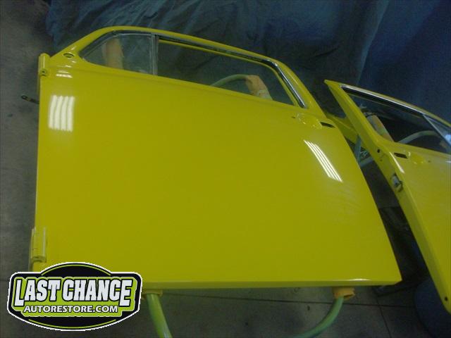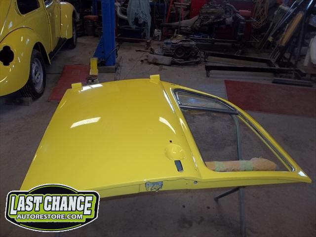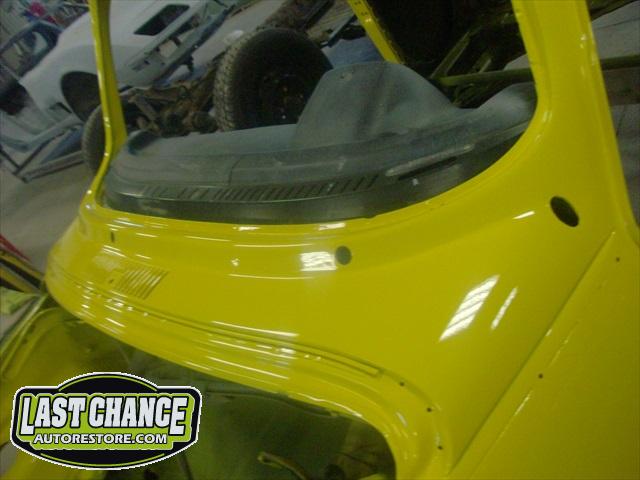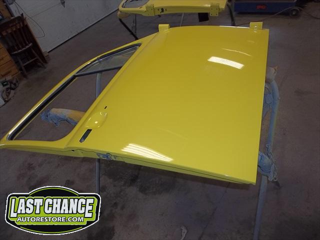 Sunny received 5 coats of Factory correct Premium Single Stage Paint to the complete body, all 4 fenders and both the front hood and engine lid (both inside and outsides).