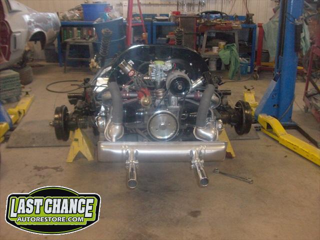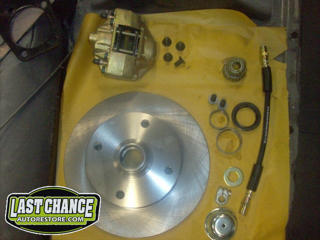The chassis received the rebuilt transmission and the fresh engine was also installed. A new front disc brake conversion kit was installed (replacing the factory drum brakes).