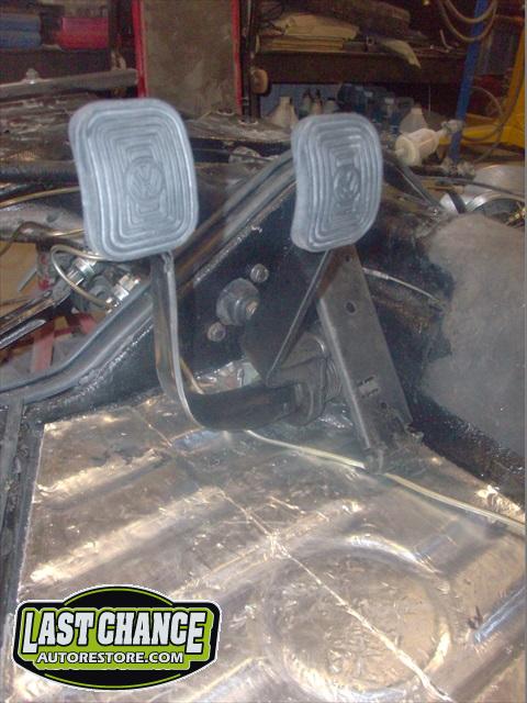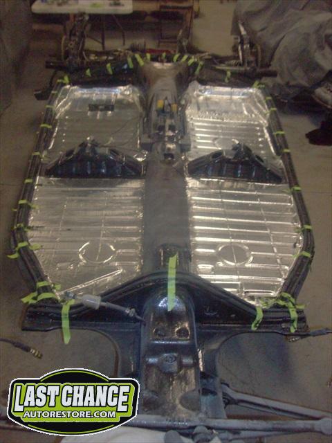 Sound insulation was installed over the 2 coats of special DOM16 anti rust paint that was applied to the complete chassis. The rear brakes were reworked with new rear brake shoes and new rear wheel cylinders and all new brake lines and flex lines.