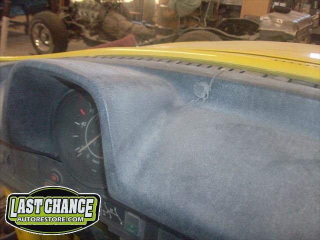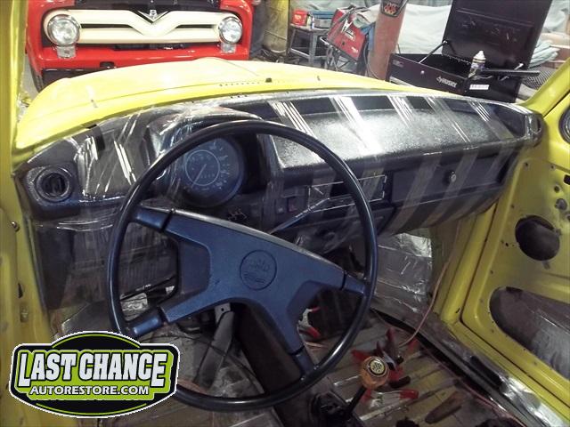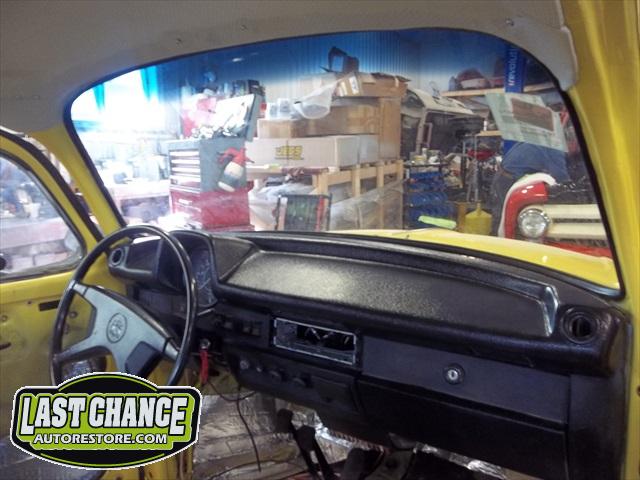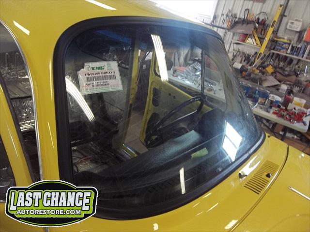 A new headliner was installed next. The windows were installed with all new rubber seals. The old windshield was replaced with a brand new one. The dash received a special new cover to make it look new again. All new weather stripping was also installed. The doors and running boards were next.