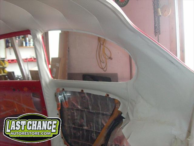 We have installed the new headliner,rear window surround,and new rear side panels. The interior is coming along nicely. We have repaired the tail light wiring issues. The previous owner damaged a large amount of the wiring harness when the car was dismantled. We installed new fuel lines and installed the steering column and a new fuel tank.