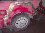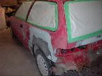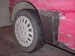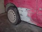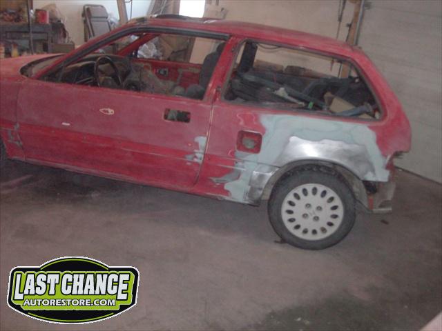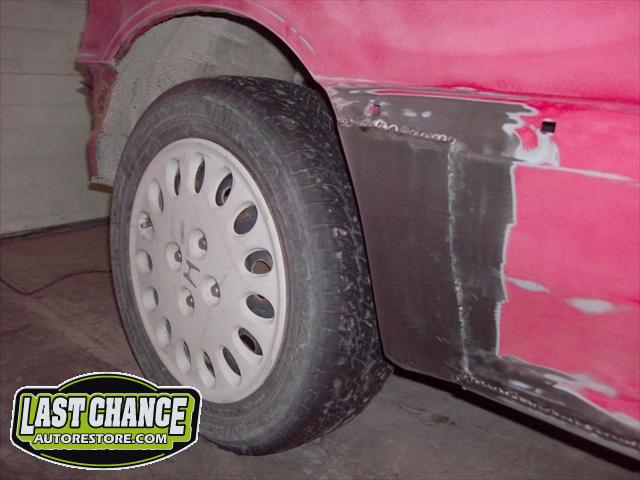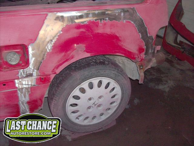 We replaced the factory headlight assemblies with an aftermarket set of "halo" style tinted headlights, along with aftermarket tinted rear tail light treatment. We replaced the basic 14" wheels with upgraded aftermarket 15" alloy wheels and installed new tires. The safety inspection & e test was done previously to the body work, where we replaced the front and rear brakes and exhaust system.