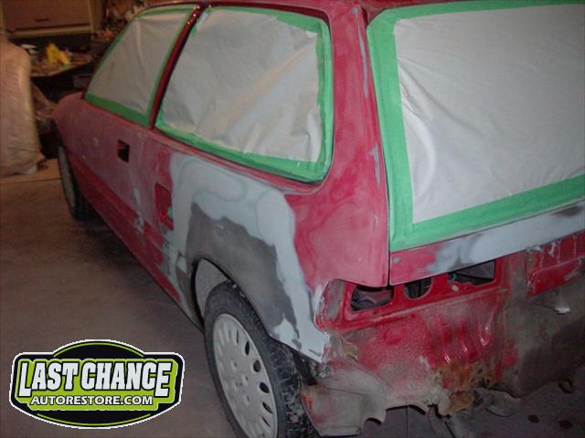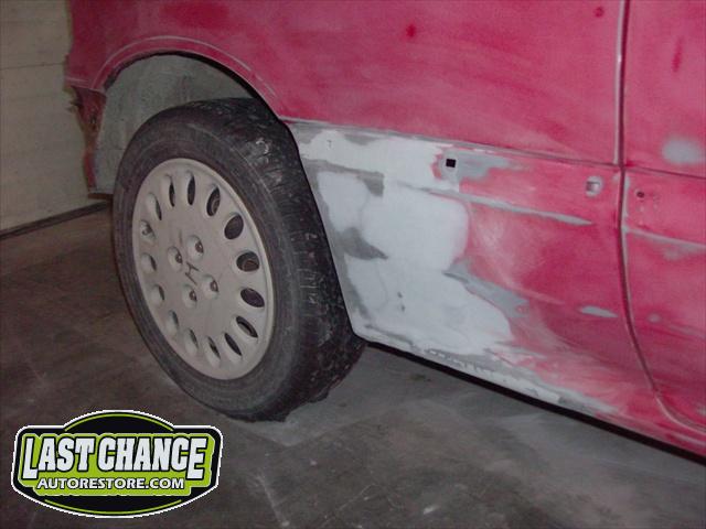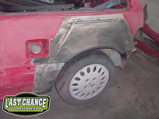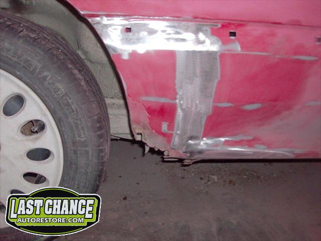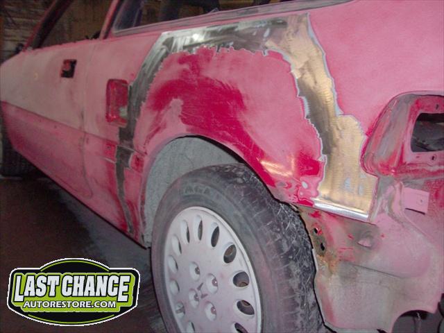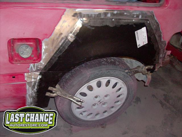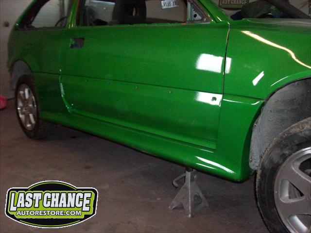 We performed a complete body job which required the replacing of both rear quarter panels & rocker panels & gave it a custom Lime Green Metallic paint job (similar to the 2011 Chevy Camaro), but with more metallic content.