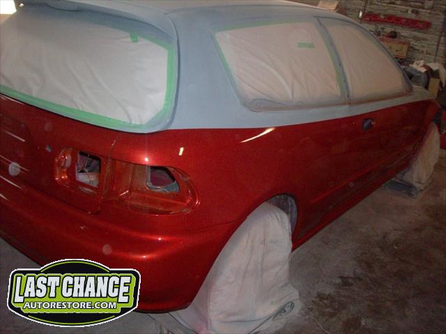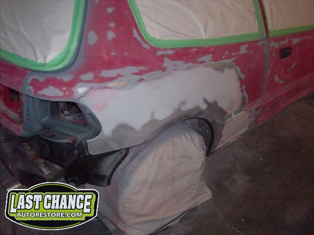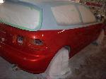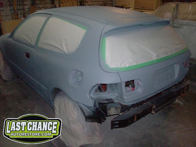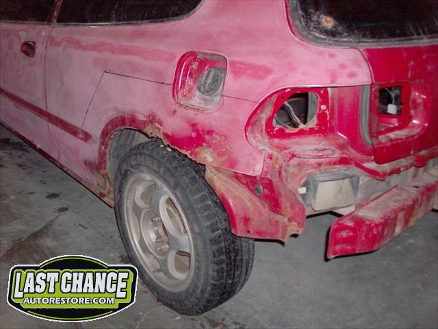 This is a 1994 Honda Civic hatchback that has received a full body job. We replaced the typical rusted out areas above both rear wheel wells with new aftermarket rear wheel arch panels. We have also repaired the lower rocker panels on both sides with new metal.