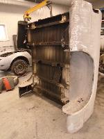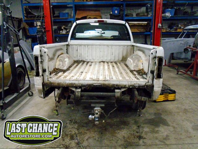 The rusty box was removed from the frame, sandblasted and several new metal patches were made, welded and installed.