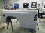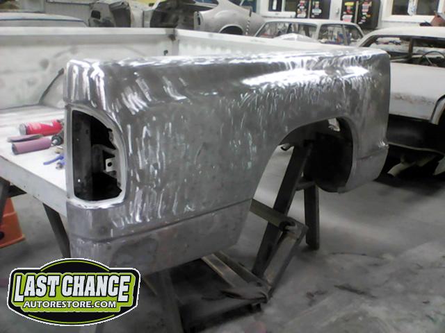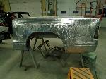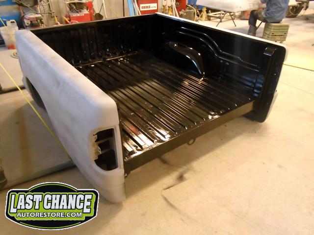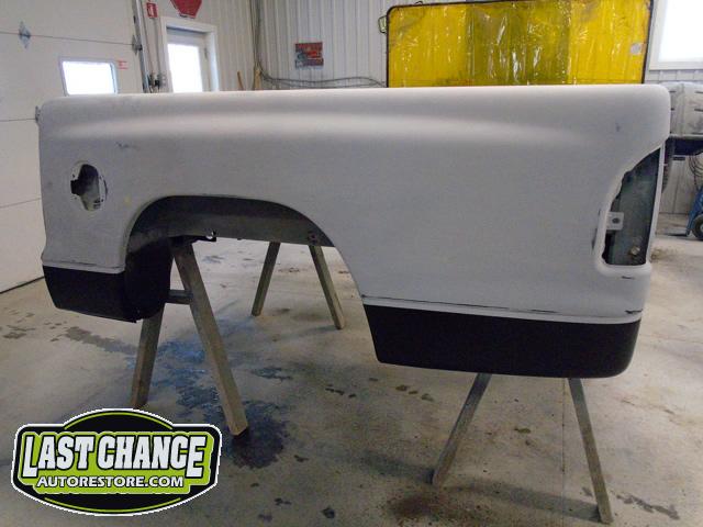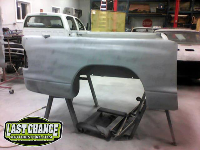 New front fenders were sanded and treated to a coat of DOM16 anti rust gloss black paint on the insides before being installed on the truck.