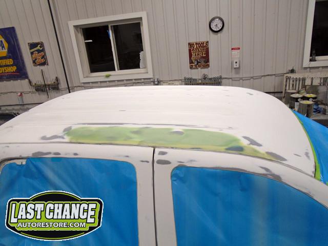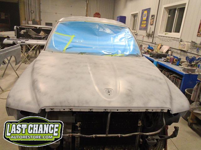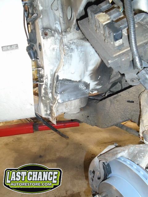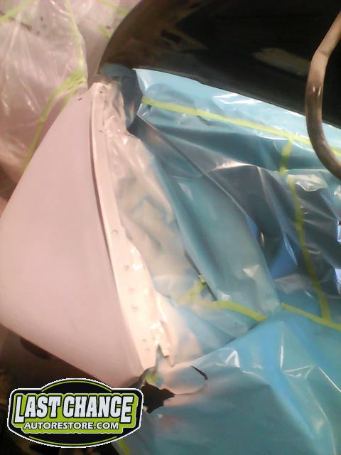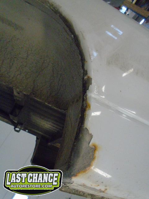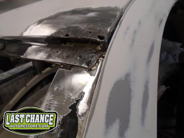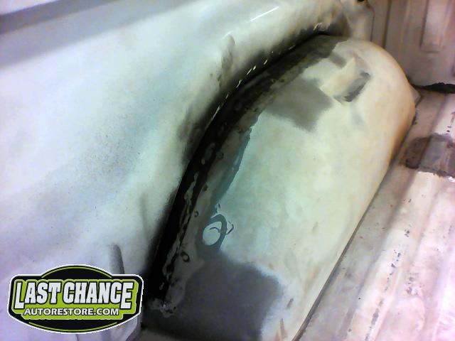 We began by removing the original front fenders and repairing holes behind both front tires (at the lower front firewall area).