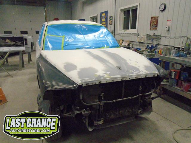 Re assembly of the Dakota was next. Custom smoked headlights, special painted grille, satin black front bumper and more.