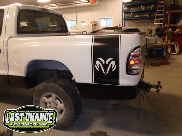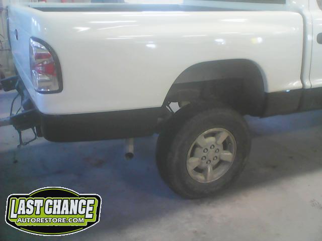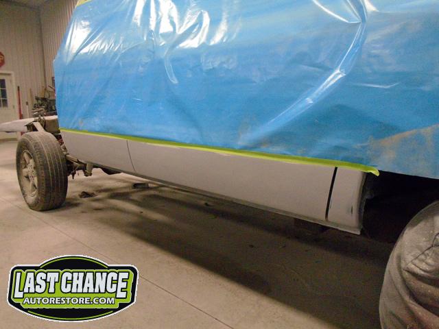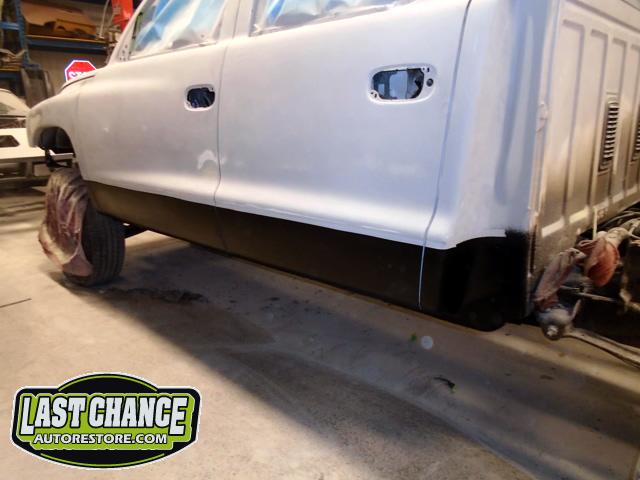 Numerous hours of block sanding and body smoothing was next. After all of the bodywork was completed, this Dakota was ready for the lower section to receive two coats of a commercial grade anti chip rocker guard.