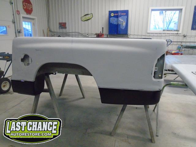The body was showing rust in several locations (box sides and bed flares, floor pans and front fender areas).