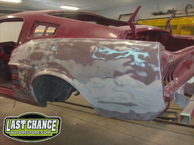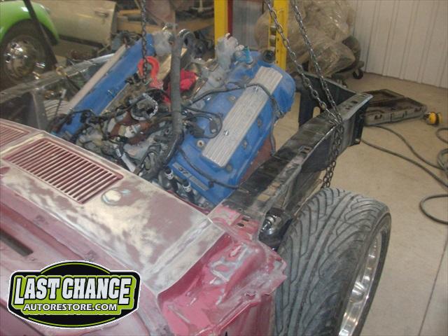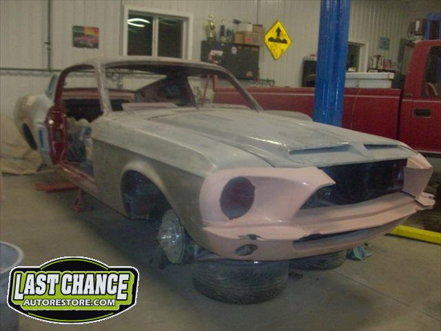 The body will be upgraded to a Shelby front hood and front facia, along with the 4 fiberglass Shelby scoops and correct rear trunk with built in rear spoiler and rear quarter panel extensions.