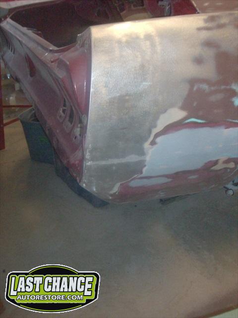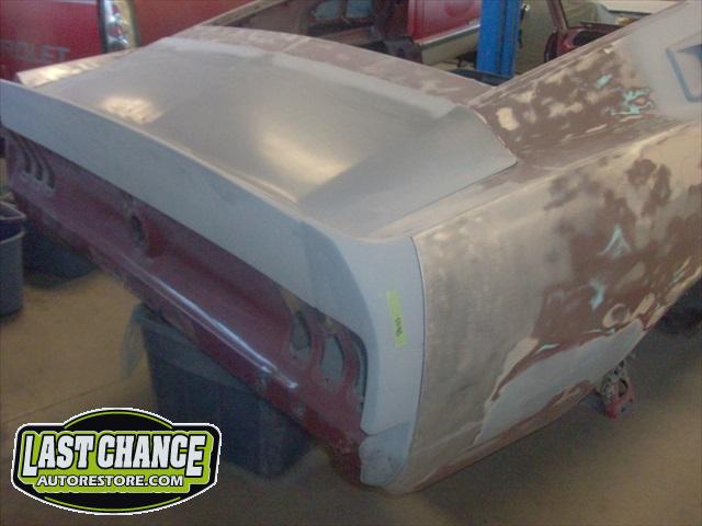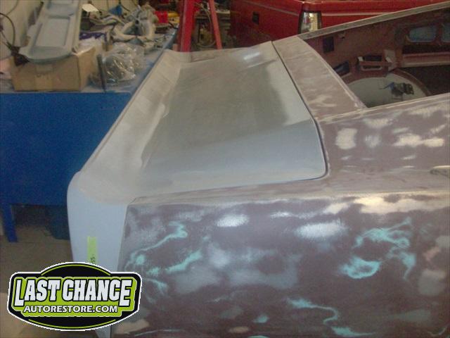 The Shelby reproduction rear deck lid was fitted to the trunk support brackets. The two rear quarter panel extensions were dry fitted next. Lots of work will be needed to ensure proper fit to the quarter panels and fiberglass extension pieces.
