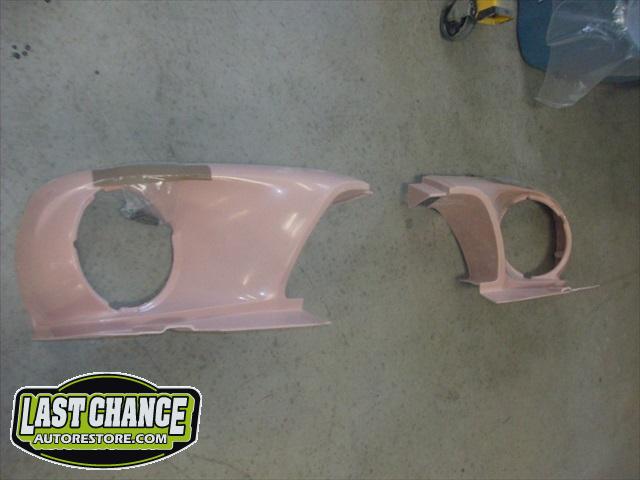 Our attention turned to the front nose area next. The Shelby headlight extensions were dry fitted onto the original front fenders. The lower bumper section was also set into place. There will be a large amount of fitting and adjusting in the front section to allow the bracing and brackets to fit and bolt to the original radiator support area.