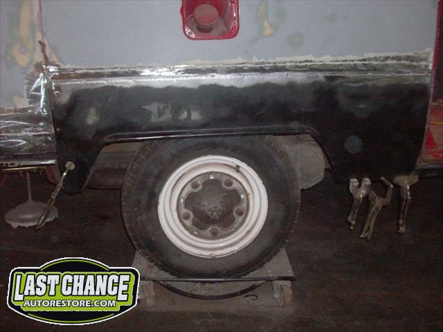 A substantial amount of fabrication was completed. The next step was block sanding and smoothing of all body panels. All of the correct factory "grooves and seams" were done.