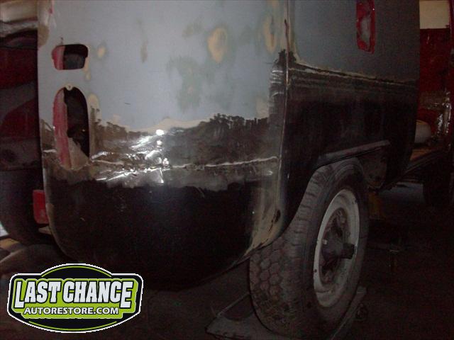 We began cutting away old rusted out metal and removing large amounts of body filler. Whoever performed the previous repairs did not repair rusted out areas correctly...they welded replacement panels on top of the rotted ones. It appears the side panels warped due to being overheated. They used a hammer and dented in the panels above the new panels & used excessive amounts of body filler in an attempt to level out the sides of the van.