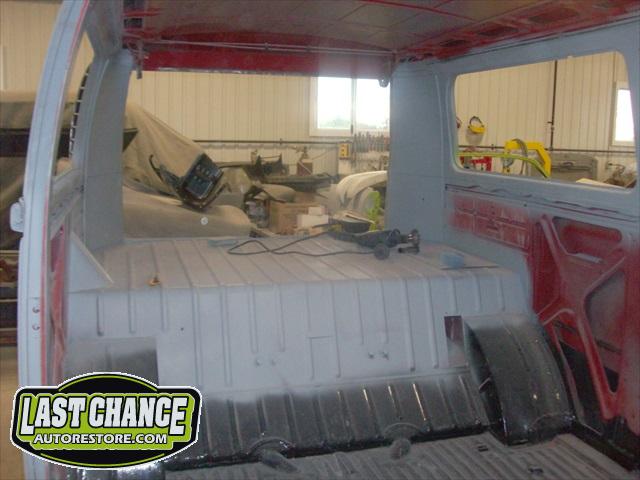 We sanded the several layers of red paint from the exterior to verify the amount of fabrication that will be required, and what aftermarket repair panels to order. The first large metal order was ordered, and has arrived.