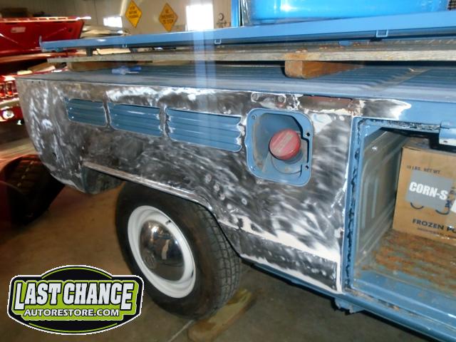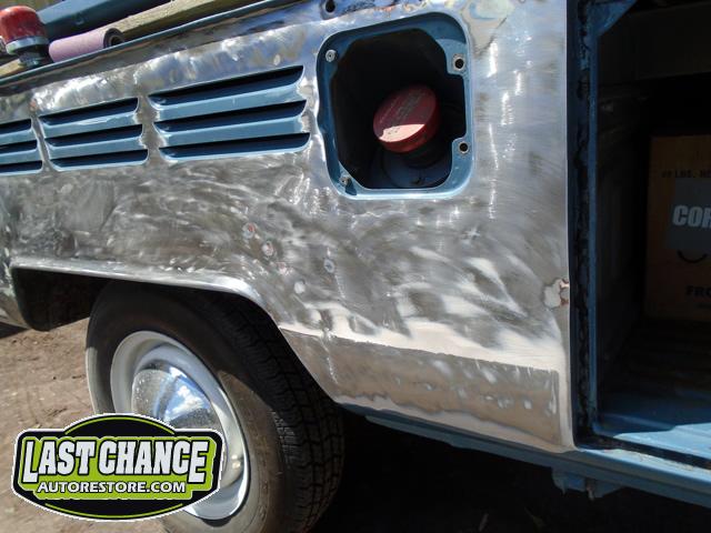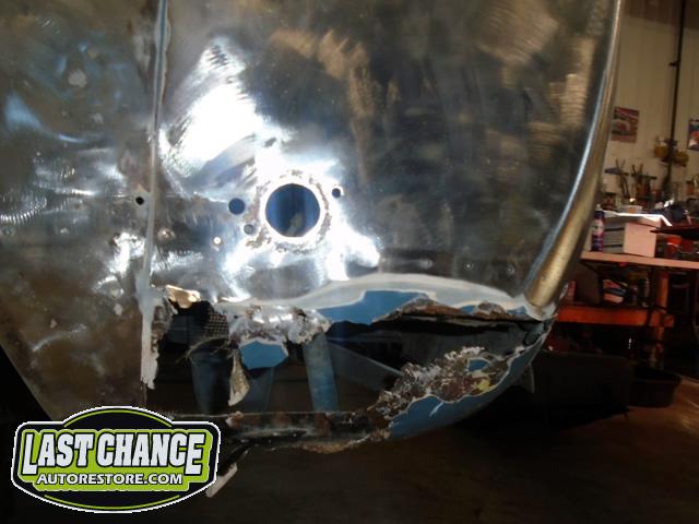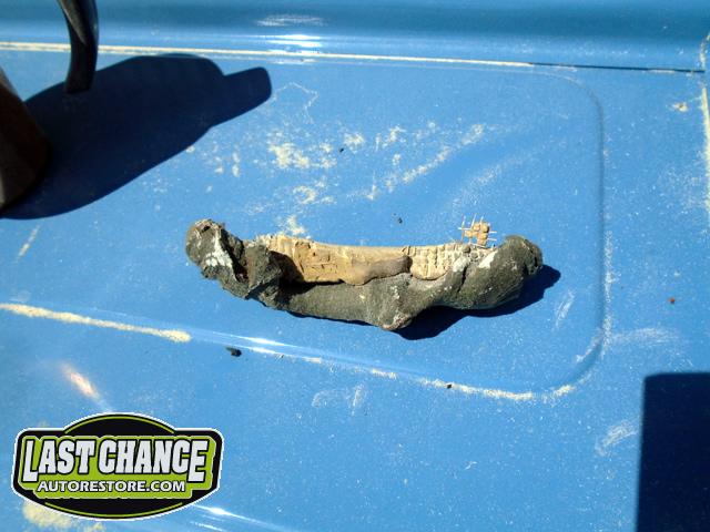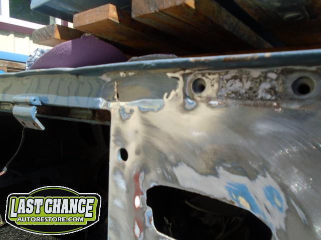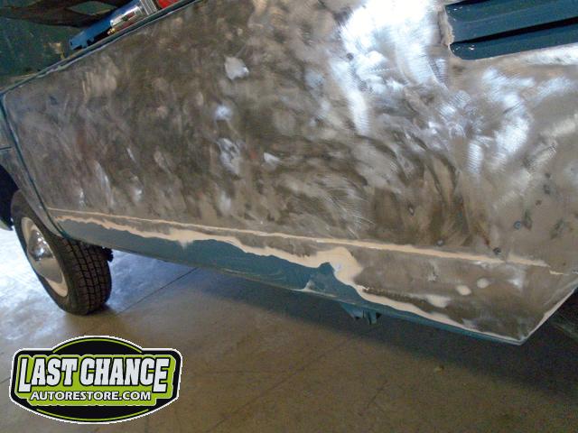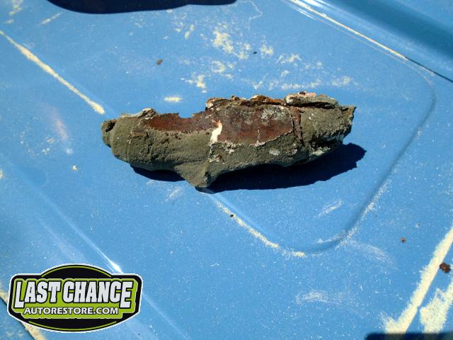It was surprising to see the large amounts of body fillers previously used in attempt to try to level out the body panels (metal patches were incorrectly welded on top of rusted out sections instead of properly cutting the rusted metal away and welding new panels flush to the original metal sections).