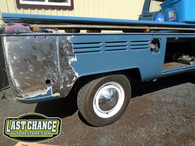 We continued to sand the exterior exposing all of the nasty previously incorrect repairs done to this singlecab over the years.